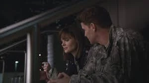 Booth and Brennan are talking about their dates for the day: Booth with Dr. Catherine Bryar, a marine biologist, and Bones with Andrew Hacker, the Deputy Director of the FBI. As they compare their dates to each other, Booth tells Bones that she is the standard he has for women, suggesting that he still has feelings for her despite insisting that he moved on.