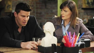 Booth and Brennan are puzzled over a case involving a male and female victim whose remains were found in a cave. When they died, the man was embracing the woman. His injuries weren't as severe as his companion's, but he didn't leave her to go for help. After Booth and Bones identify the bodies, they realize that the two people — who were obviously romantically involved — were of completely different socioeconomic backgrounds. Booth, Sweets, and Bones discuss the case over lunch at a diner, and Bones says when people are opposites, it can sometimes work out. She admits that she used to imagine herself and Booth together. Of course, being Bones, she says this so matter-of-factly that Booth almost drops his spoon. Sitting awkwardly between them, Sweets asks if they want to be alone, but they don't.