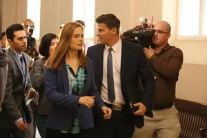Caroline, Booth, and Brennan are in a courtroom with a hacker,"Pelant", who says he isn't the same guy anymore. Booth and Brennan are at home arguing about how Brennan is the main suspect in the case of her dead friend. More evidence points to Brennan. Booth and Brennan are getting their daughter baptized, Booth tells Brennan he is going to get the car, but Brennan calls him over to her. She tells him that she loves him and that the baby is not the only reason they are together, then they kiss. Booth tells her everything will be okay and he kisses the baby's forehead. When Brennan's dad shows up in another car, she puts the baby in first then she gets in, Booth notices whats going on and runs after the car. He tells her dad to tell her that," he is going to get his family back" and sits on the church steps crying.