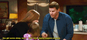 At the end of this episode Booth surprises Bones with a mixed tape on an iPod (with a double earphone jack so they can listen and be close together) that starts with "their" song Hot Blooded and they dance around the kitchen with Christine. This is also an episode where Booth and Bones have a rare emotional moment, As he calls Bones Temperance and cradled her in his arms when she had a moment of crying in the lab about how the kid they were investigating was a kid and how young he was, showing how being a mother has opened her to the motherly/humane bond to children and family.