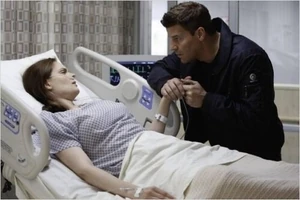While in the hospital Bones kisses Booth on the cheek to thank him for letting her brother see his daughter before he turned him in. Booth and Brennan got bombed while tailing a serial killer and Booth helped Bones out of the car.