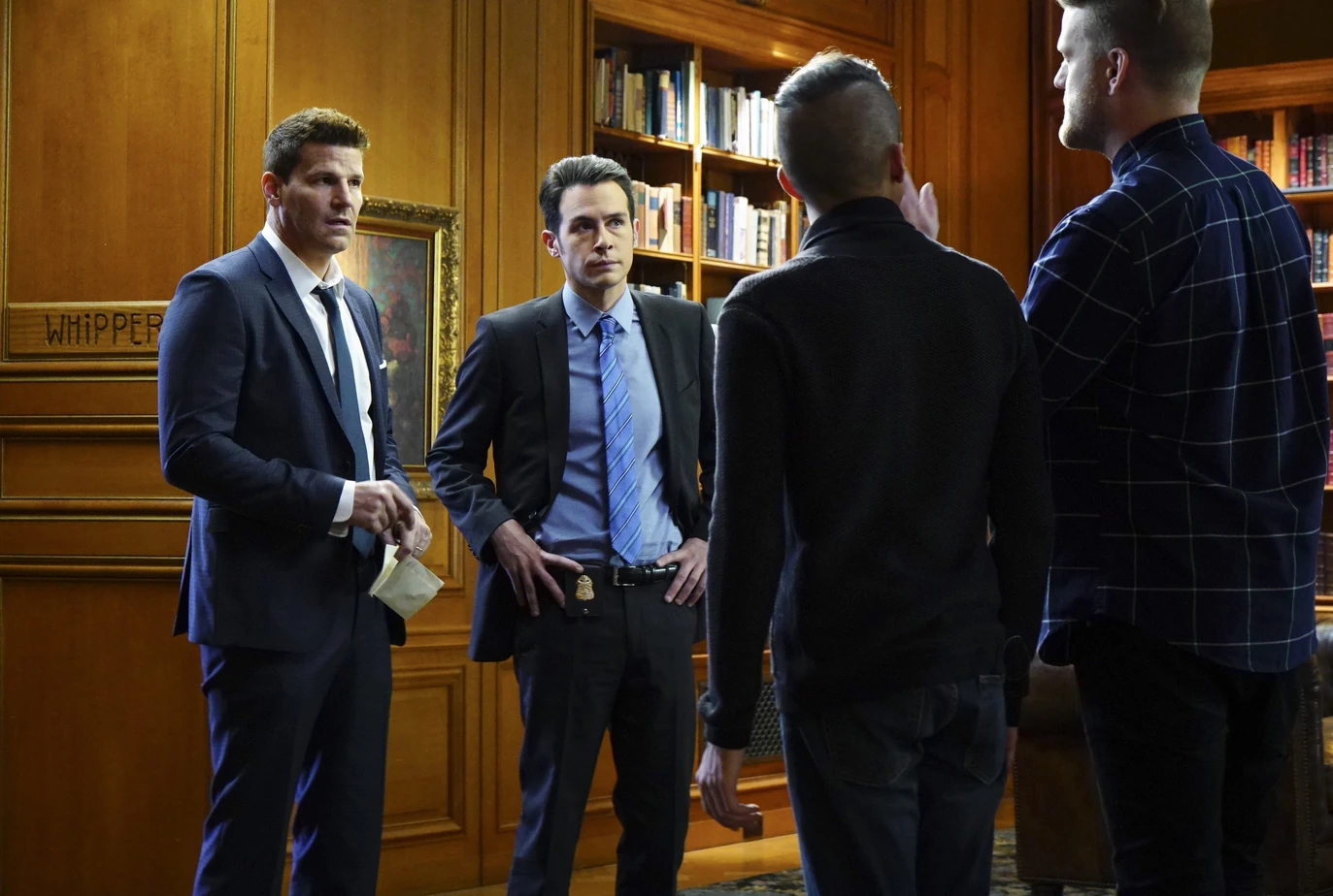 | In a flashback, Booth, Kevin, and the others destroy the evidence and burn the van with Jared's body inside. Booth insists he must be the one to do it. In the present, Agent Miller admits to Aubrey and Caroline that her partner, Richard, who went missing had a printed list of undercover FBI agents. The team discover a severed finger of Richard's fiancée, Chloe, in his freezer, and that she is missing and was being held for ransom for the list. After recovering evidence, the team discover the bodies of Richard and Chloe. At the Jeffersonian, Dr. Benjamin Metzger, a digital forensic scientist for the FBI arrives. However, evidence points to Metzger being the one that killed Richard and Chloe to get the list. Brennan is able to get Booth's location from Metzger. At the warehouse, Booth continues to struggle with his wound as the gang waits to sell the list for lots of money. Kevin gets a text from Metzger that says Booth is FBI and that he must kill him or the deal is off. Kevin does not want to kill Booth, but when the other two men discover this, a fight ensues. Booth is able to take the two men out and escape the building. The SWAT team arrives and Booth is reunited with Brennan. He later recovers in the hospital. Meanwhile, Arastoo and Cam break-up as he wants to move on, since Brennan has returned to the Jeffersonian, displacing him, and that jobs he would take would require Cam to leave the Jeffersonian and he does not want her to resent him.