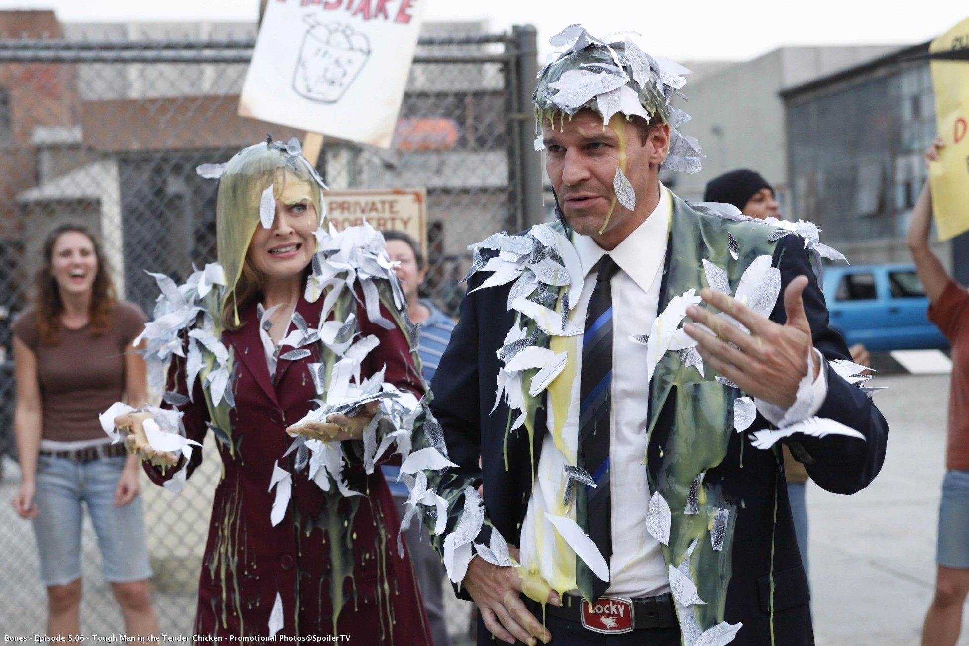 | Remains of a chicken farmer are found on the bank of a nearby river, and Booth and Brennan are called in to investigate. The farmer was about to inherit a chicken factory and had many enemies with motive to kill him -- leaving the team with a lot of murder suspects to sort through. Meanwhile, chemistry develops between Angela and Wendell.