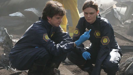 Back at the lab Goodman informs the team that the NTSB has ruled the crash to be accidental. They are to concentrate solely on identifying a sixth passenger, as the manifest listed only five. Ignoring his orders, the team secretly begins reviewing the bone fragments from the mystery victim they believe was not involved in the crash. As Brennan gets Booth up to speed, they are confronted by Jesse Kane. Kane believes the un-charred bone fragments may belong to his father, Max Kane, who’s been missing five years. Though Brennan sympathizes with Jesse (due to the unsolved case of her parents’ disappearance), she refuses to discuss the details of the current case with him. In the Bone Room the team’s discoveries regarding the mystery victim point to a gruesome scenario: the victim was most likely frozen, dismembered, and then fed into a wood chipper. They also determine that the bone fragments are the same age and sex as Jesse’s father. Booth and Brennan narrow their search of suspects to a maintenance worker named Ray Sparks, who under interrogation produces a solid alibi: He was in jail during the time that Max disappeared.